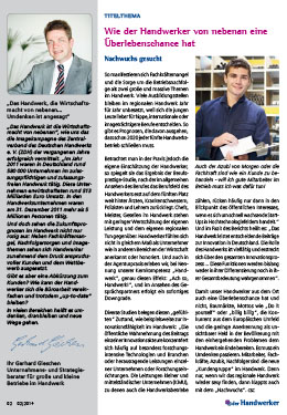 So manifestieren sich Fachkräftemangel und die Sorge um die Betriebsnachfolge als zwei große und massive Themen im Handwerk. Viele Ausbildungsstellen bleiben im regionalen Handwerk Jahr für Jahr unbesetzt, weil sich die jungen Leute lieber für hippe, internationale oder imageträchtigere Berufe entscheiden.